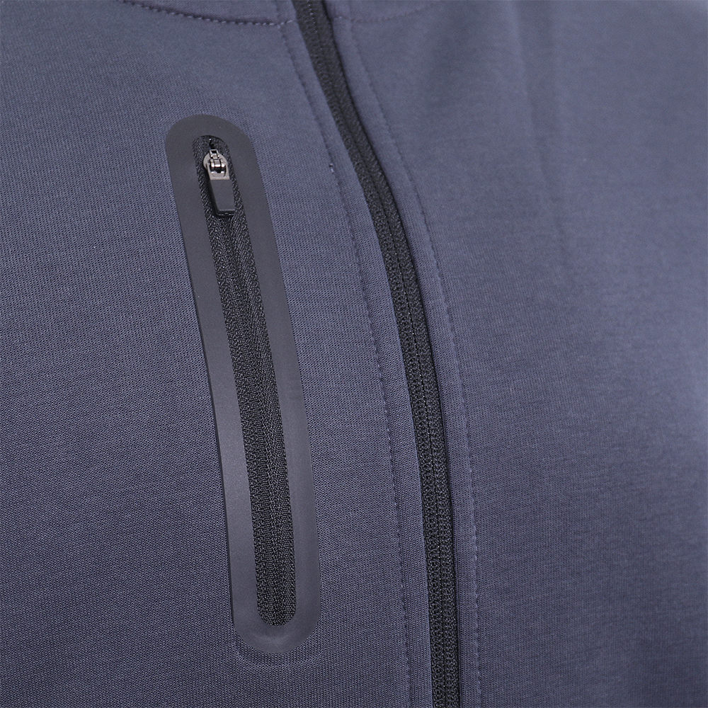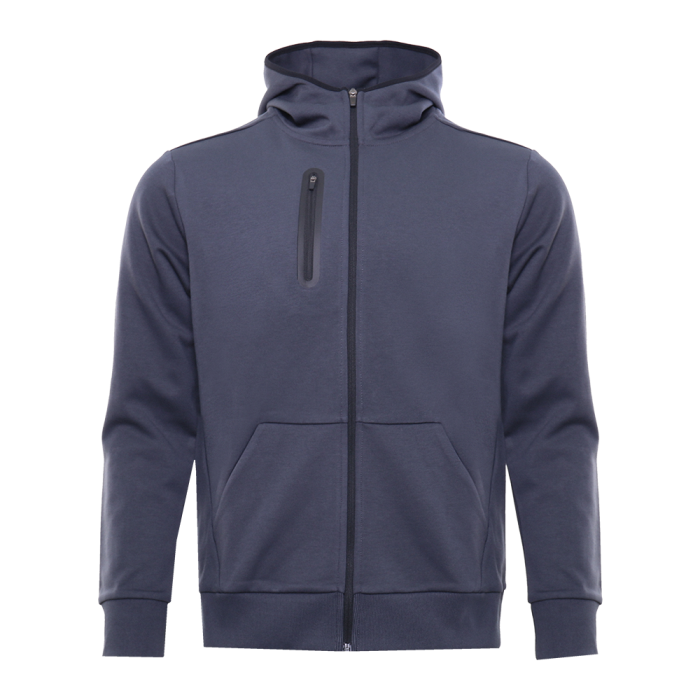 Толстовка прямого силуэта с капюшоном, переходящим в воротник-стойку, глубокими накладными карманами, прорезным нагрудным карманом и застежкой на молнию. Модель дополнена плотными манжетами на рукавах и по низу изделия, что повышает её практичность и защищает от проникновения холода.<br />