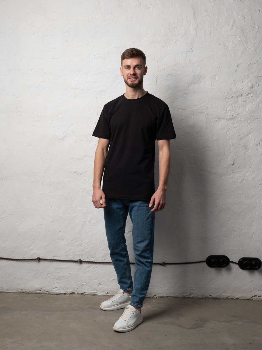 Лаконичный крой, внимание к деталям и лояльность к большей части технологий нанесения универсальная модель воплотит в реальность ваши креативы, порадует качеством и комфортом.<br /> <br /> Мужская футболка прямого силуэта с округлым воротом и втачным рукавом. <br /> <br /> Футболка выполнена из мягкого и прочного полотна из 100&#37; хлопка. Материал обладает отличными влагоотводящими и воздухопроницаемыми свойствами. Ткань легкая и приятная к телу.<br /> <br /> Размер мужской футболки: 52/XL. Параметры модели: рост 190 см.; обхват груди 108 см.; обхват талии 87 см.; обхват бедер 104 см.