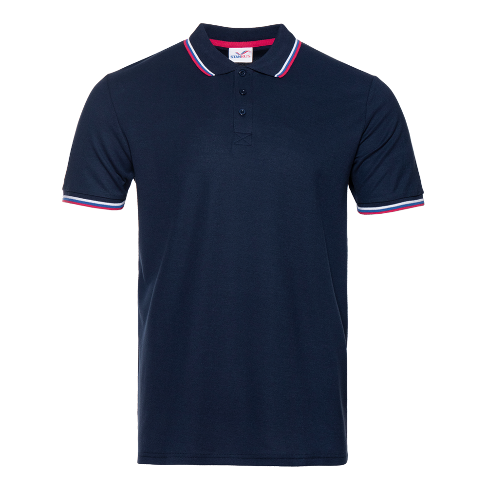 Рубашка поло мужская триколор STAN хлопок/полиэстер 185, 04RUS (Тёмно-синий, 56/XXXL)