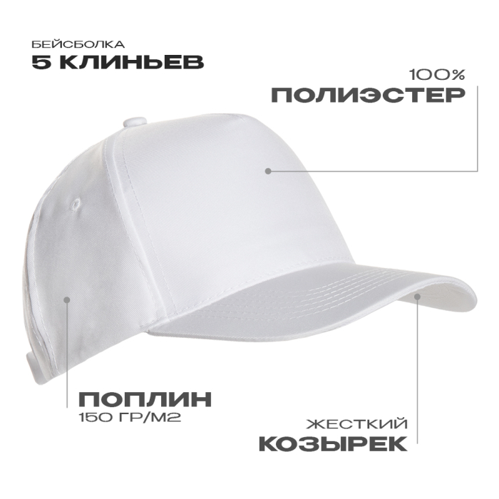 Бейсболка изготовлена из легкого и износостойкого материала поплин (100% полиэстер). Материал хорошо впитывает влагу и пропускает воздух, позволяя сохранять ощущение комфорта даже в непогоду.Характеристики: