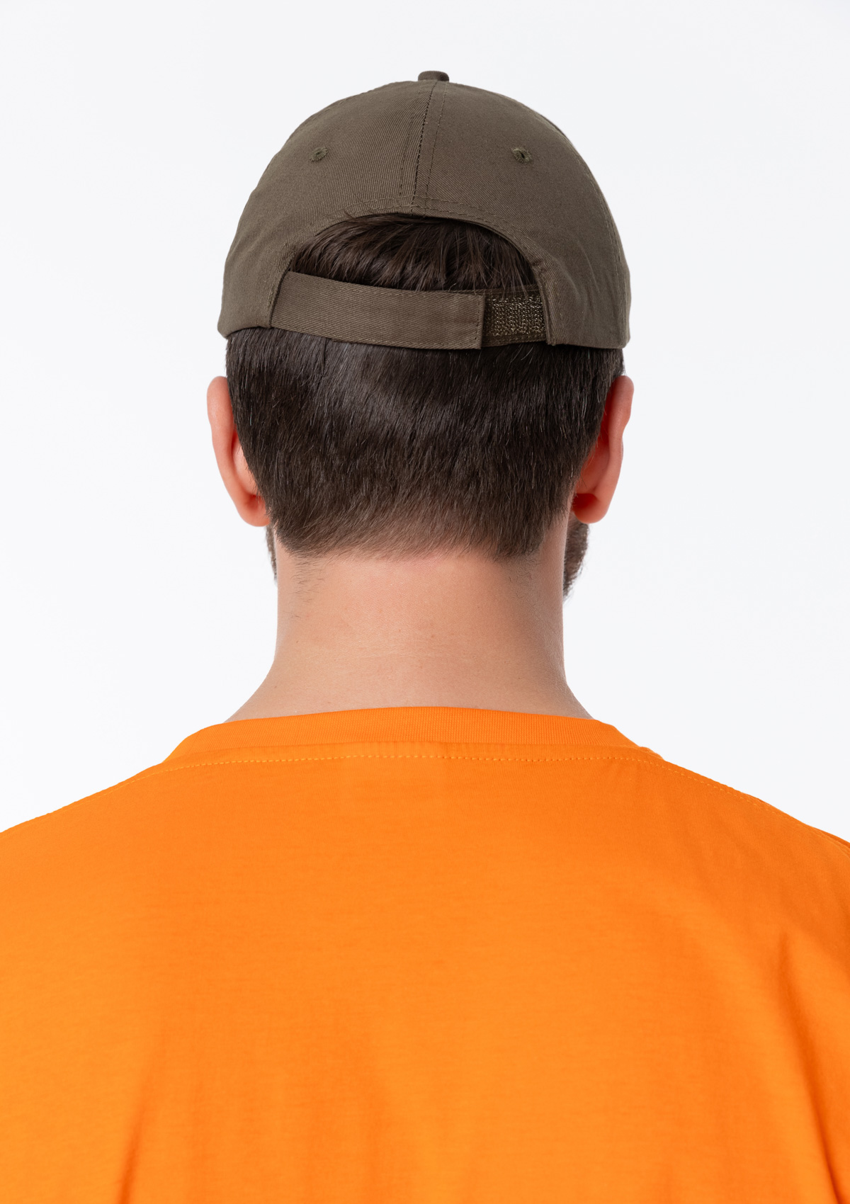 Классическая модель с жестким изогнутым козырьком, прилегание регулируется ремешком застежкой на ленту [велкроk. <br />