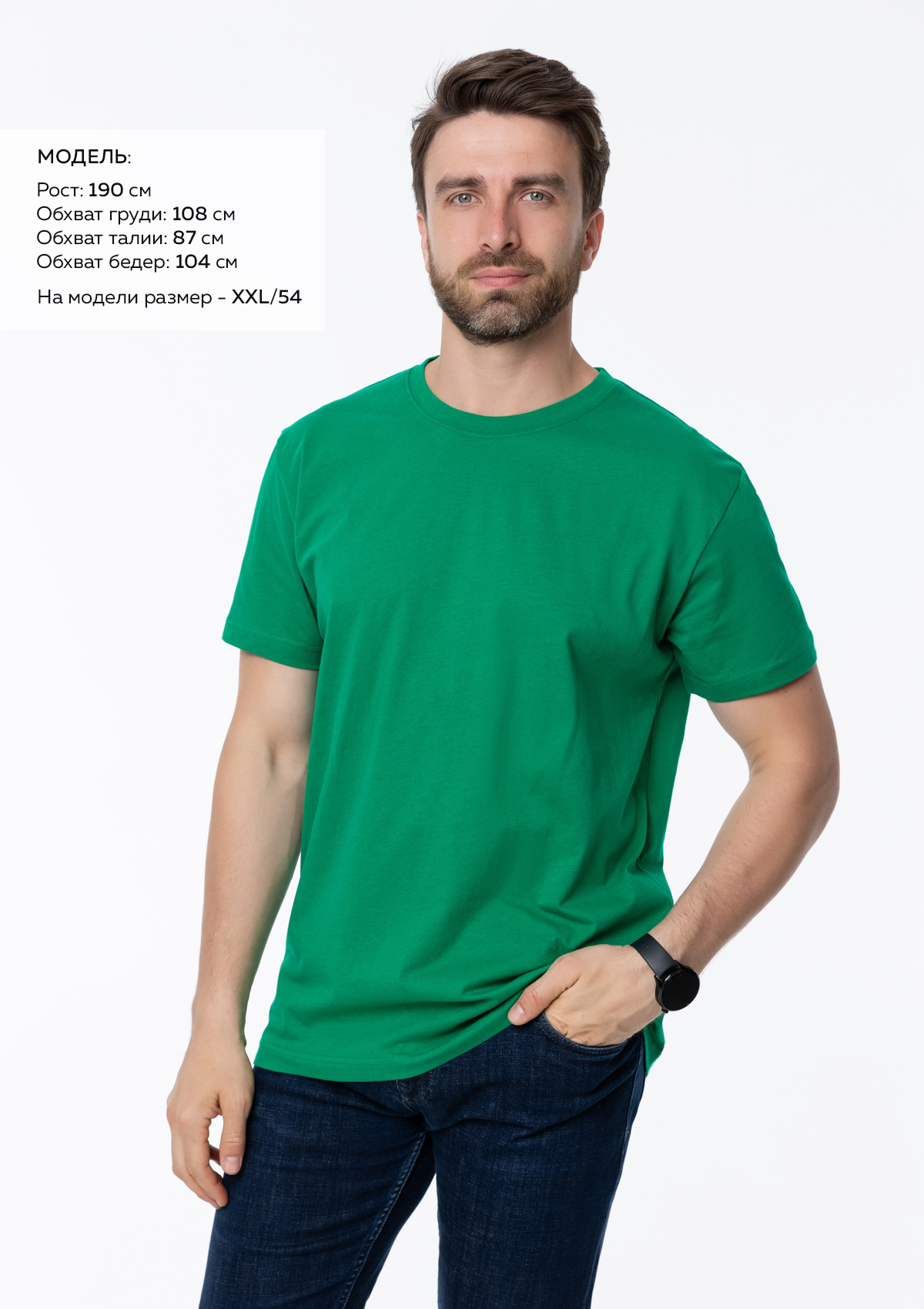 * Размер мужской футболки: XXL/54. Параметры модели: рост 190 см.; обхват груди 108 см.; обхват талии 87 см.; обхват бедер 104 см.Характеристики: