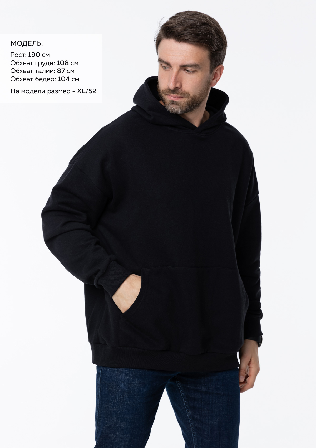 Размер мужского худи: XL/52. Параметры модели: рост 190 см.; обхват груди 108 см.; обхват талии 87 см.; обхватPбедерP104Pсм.Характеристики: